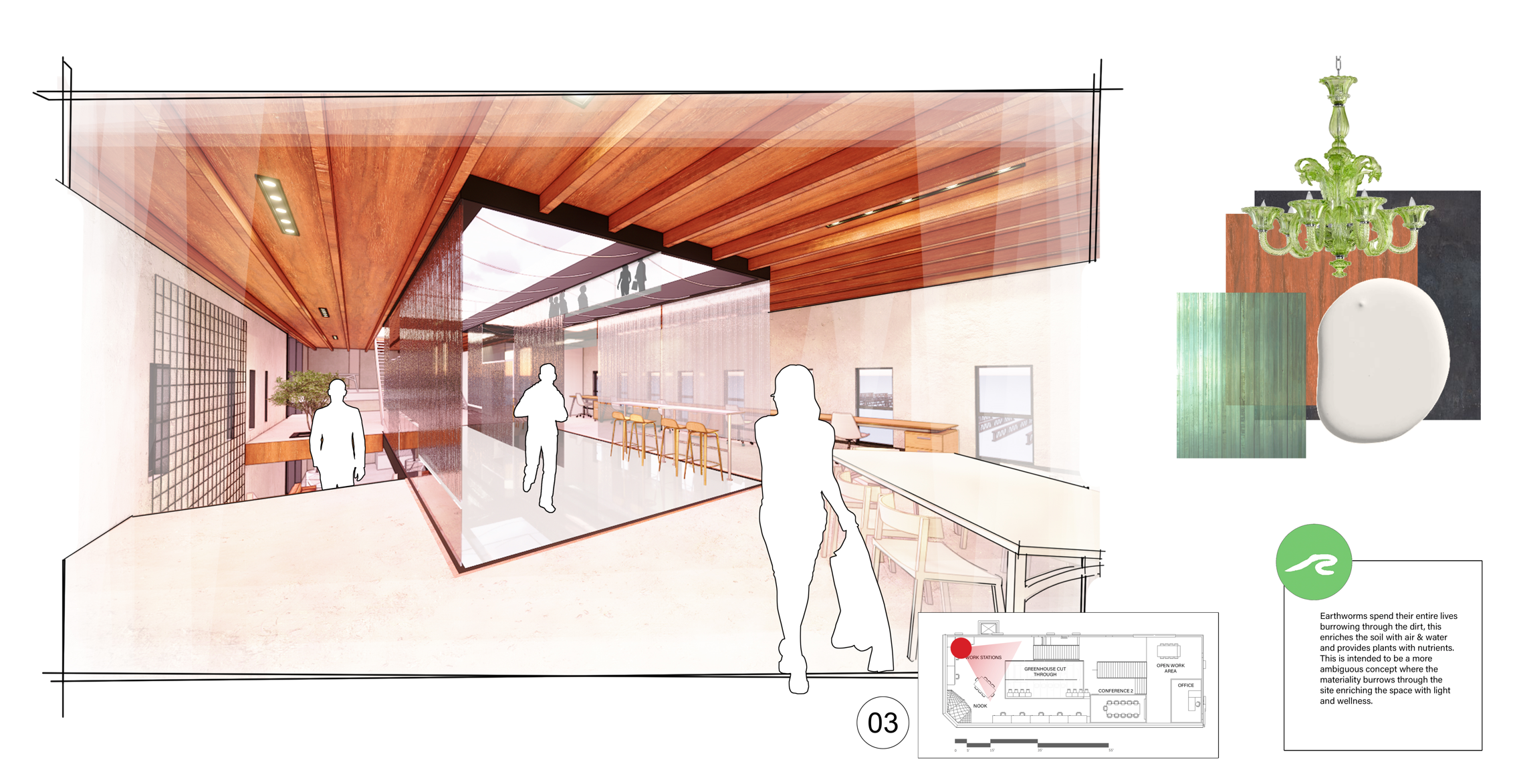 The idea of applying this concept of the biophilic office is not a new one. This concept aims for a new route in this growing trend. “Reclaim” analyzes aspects of five efficient animal species and how they compare to five concepts of economic efficiency: Social, Productive, Allocative, Dynamic, and Scale. As we begin to organize these species into these groups, we can begin to break down the purpose of the concept and relay them into programmatic, architecture, materiality, etc.